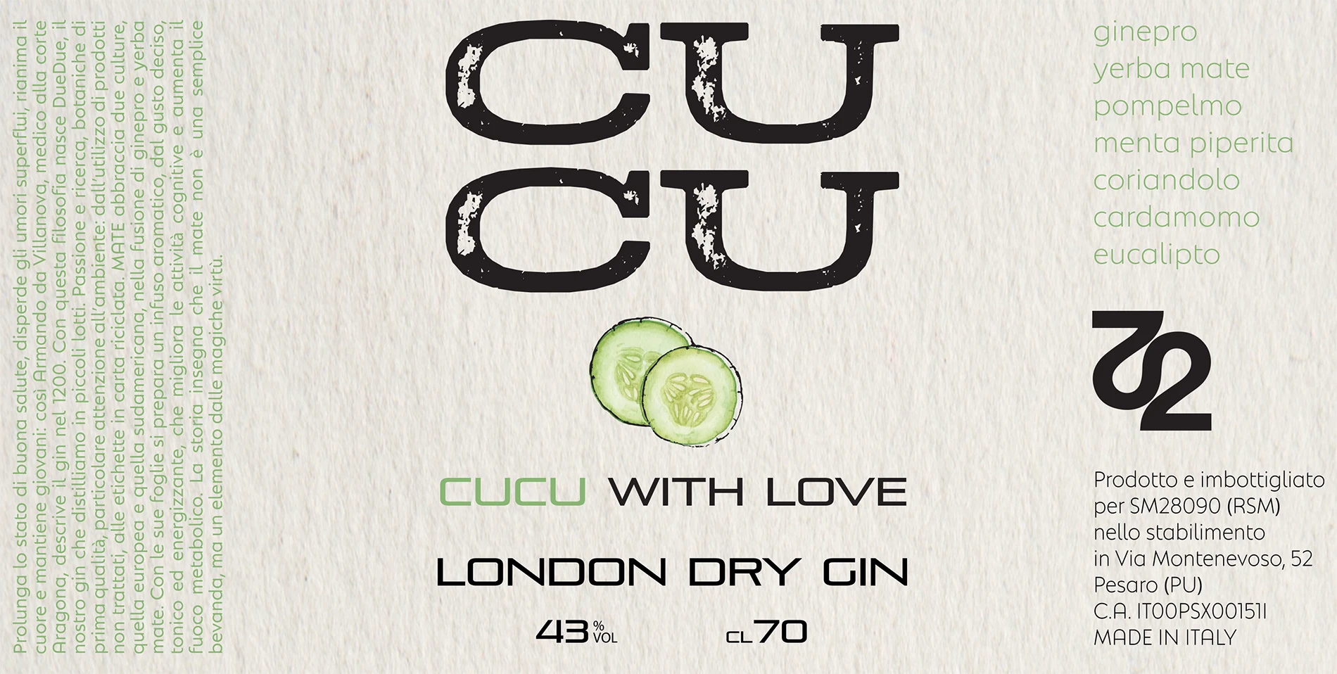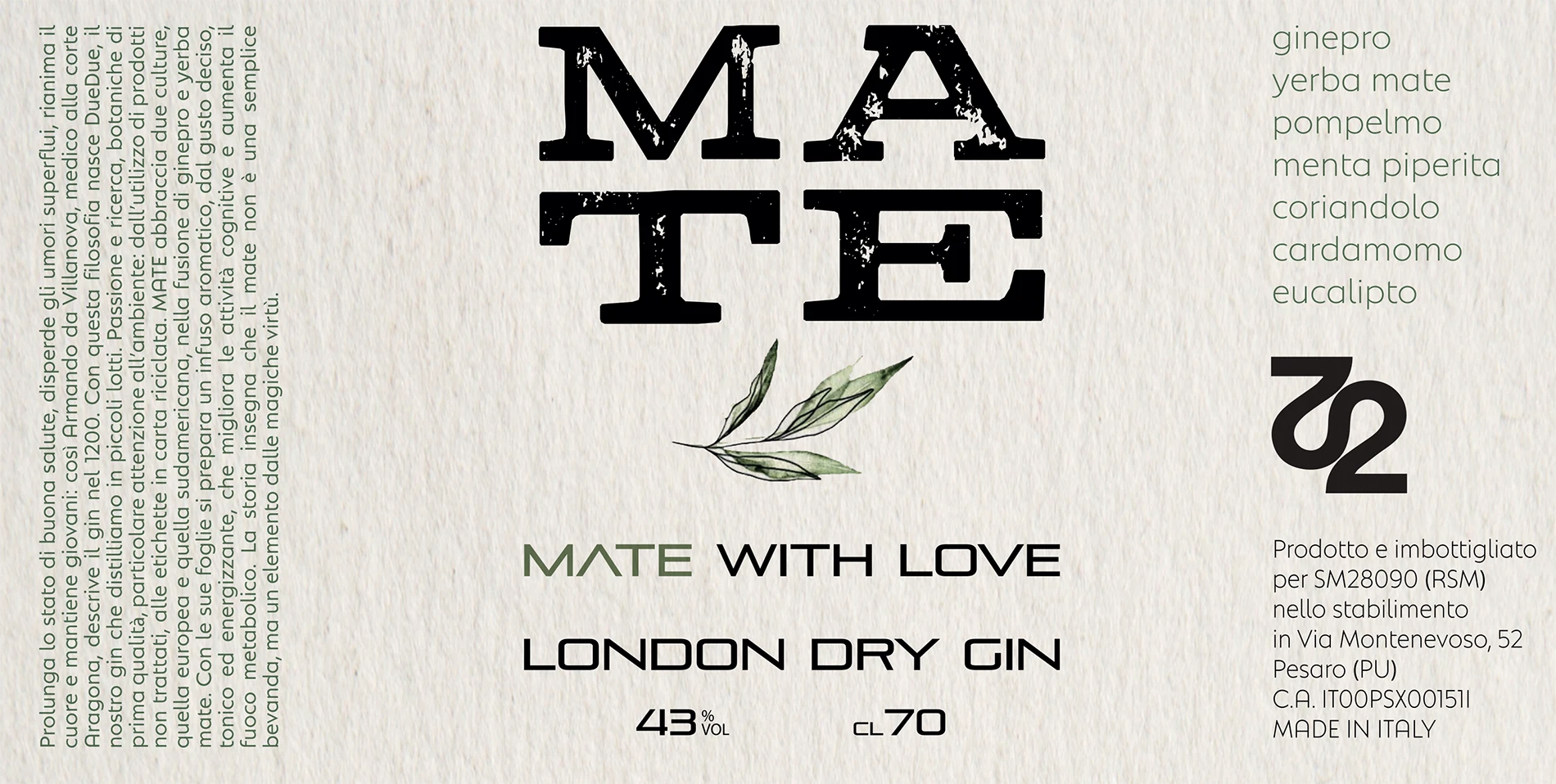The label design was conceived to embody the dual cultural identity at the heart of the brand: Europe meets South America, juniper meets yerba mate. The label features a clean, modern layout with botanical illustration elements and crisp typography, printed on textured recycled paper to evoke naturalness, authenticity, and environmental care. The restrained color palette nods to both heritage and freshness —subtle earth tones punctuated by a vibrant accent that suggests the energizing character of yerba mate.