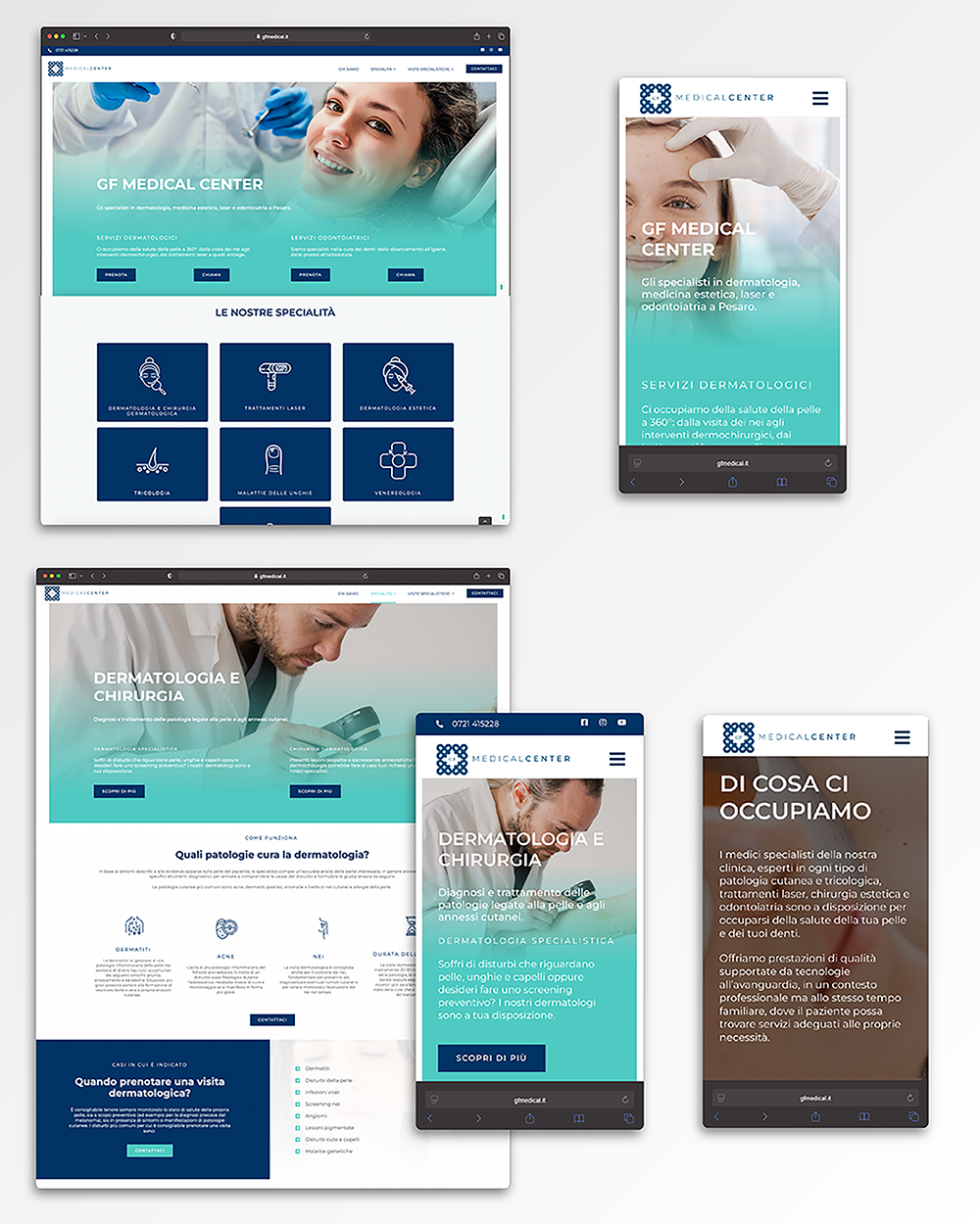 As Art Director & Web Designer at Satisfy, I was part of the rebranding of GF Medical identity. The goal was to evolve the brand into something more modern and user-centric. I restructured the site around key audiences (people seeking dermatology, aesthetic or dental services) and defined clear user flows for booking, discovering specialties, and contacting the clinic. I work on UX/UI design for web and mobile, front-end development, and create visual content —from graphics and motion design to advertising and social content— ensuring a cohesive and engaging digital experience.