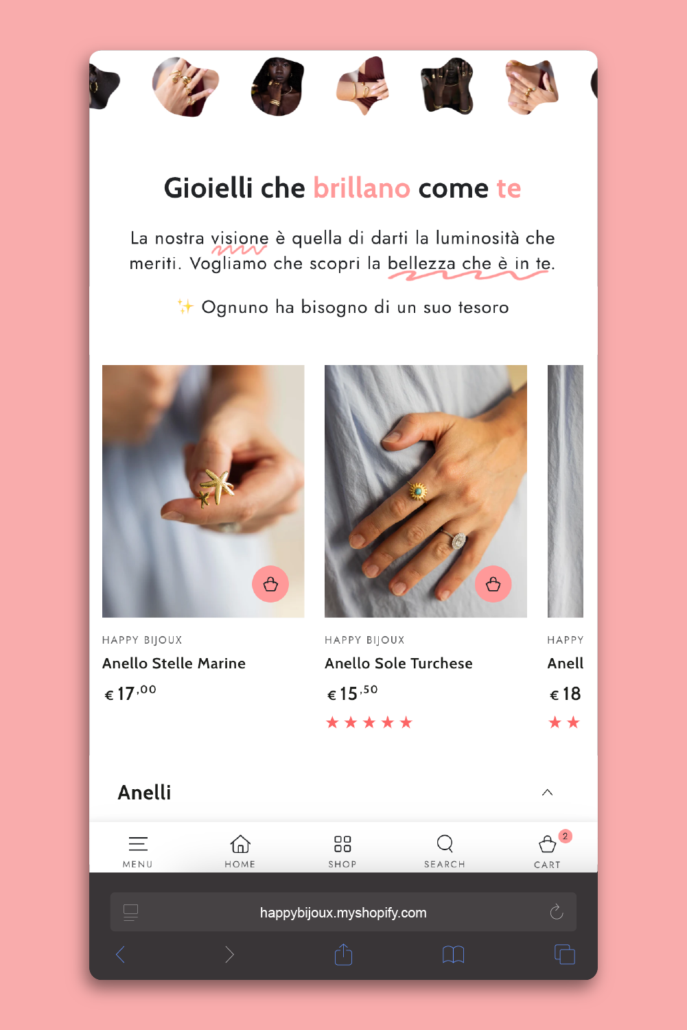 For the Happy Bijoux project, I led the end-to-end design and implementation of their Shopify store —from visual design through to theme customization, integration, and launch. After collaborating with the client to define their brand tone (light, modern, joyful) and key user journeys (browse collections, quick add to cart, mobile checkout), I selected a Shopify theme and customized both its layout and styling to match the Happy Bijoux identity. I configured product collections, set up responsive design for seamless mobile experience, and implemented third-party integrations. I also optimized the storefront for performance and usability—ensuring fast loading, clear calls to action, and a streamlined checkout flow. The result is a polished, user-friendly jewellery e-commerce site that reflects the brand’s personality and is ready to scale.